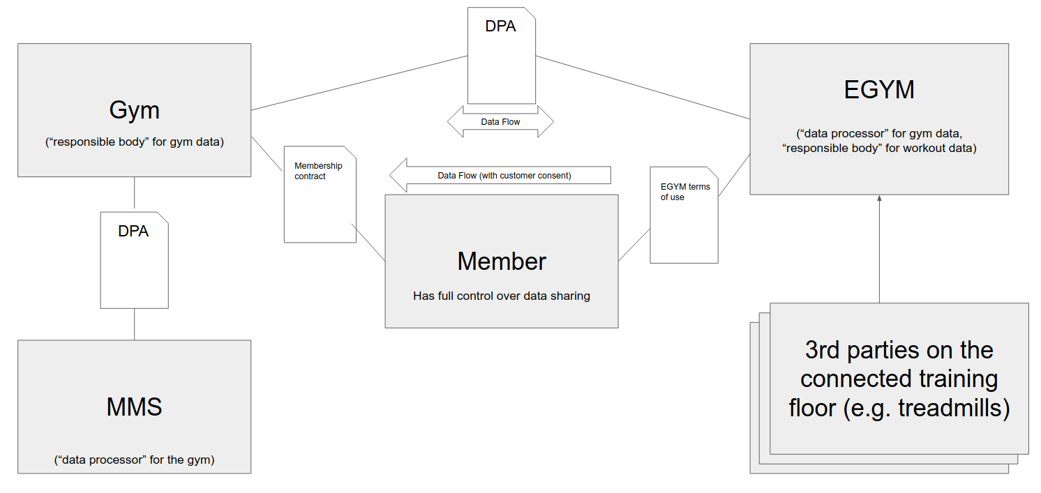 Following this logic allows the Gym to work with the MMS data without any additional per-user consent, while members have the full choice with whom they want to share or not share their personal, health and workout data. Please read more details on how it works on practice and overview of EGYM User Account Concept here.