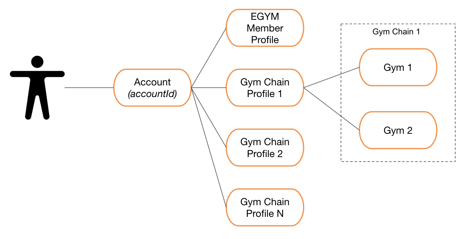Account represents a group of profiles that belong to one and the same person. It can be thought of as the representation of the actual physical person. It can only ever contain one EGYM member profile, but several gym profiles that we manage on behalf of gyms. In the MMS API it is uniquely represented by accountId.